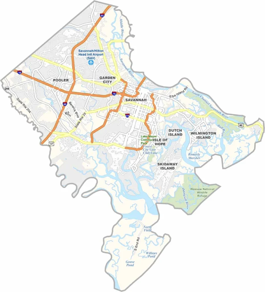 Map of Chatham County, GA (source: US County Maps)